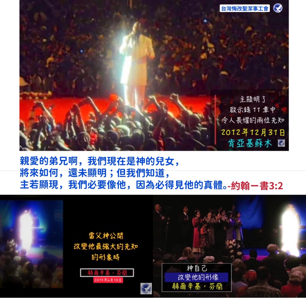接著有聲音說「告訴他們,在教會 被提時,他們的身體將會像我的一樣。」「告訴他們,在教會被提時,他們的身體將會像我的一樣。」