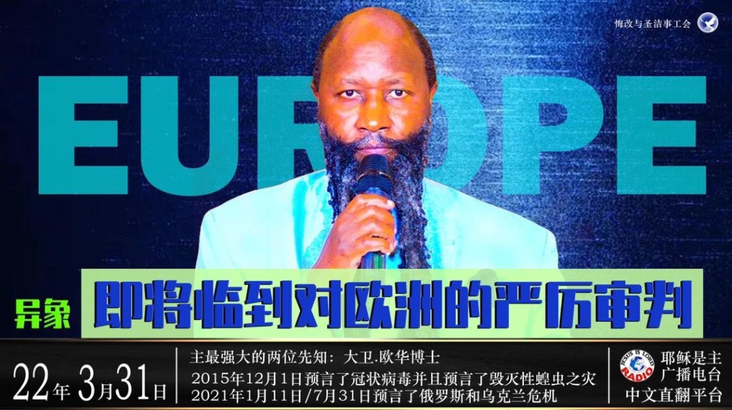 蒙福的人們,現在大概是東非時間凌晨1:10。主向我開口了,甚至當我坐在這裡,我在這裡坐在椅子上,然後睡著了。主全能者給我畫了歐洲的地圖,我可以看到歐洲的國家,一直到非洲這裡。主全能者把歐洲的地圖畫給我看,難以忍受的神的審判要臨到歐洲,歐洲國家,歐洲大陸。這是正在進行中的主在歐洲審判的升級。主全能者在呼喚歐洲人和歐洲的國家悔改。