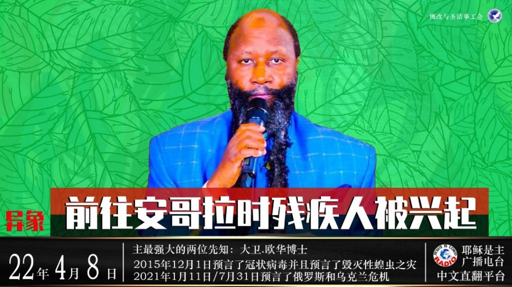 蒙福的人們,主耶和華跟我說了話這個下午,這個下午主讓我看到殘疾的就要站起來在這個土地中,我看到了殘疾的男孩要站起來,我看到了殘疾的站起來走路,這意味著主要興起很多的很多的殘疾人在這個土地中,我們前往安哥拉復興聚會的道路當中,巨大超級榮耀的安哥拉復興聚會,我看到了殘疾的在這個土地中被站起來,然後這會非常非常強大,殘疾的要在這個土地中站起來,然後我不知道在外邊的國家怎麼樣,在這個國家,在這個旅程當中,前往超級榮耀,巨大,宏大的安哥拉復興聚會的這個道路當中,安哥拉2022年。